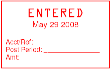 |  | | Large imprint size, 1 3/8" x 2 1/8", | | | with three lines for notations in addition to the ENTERED, PAID or RECONCILED description